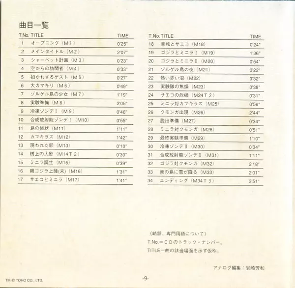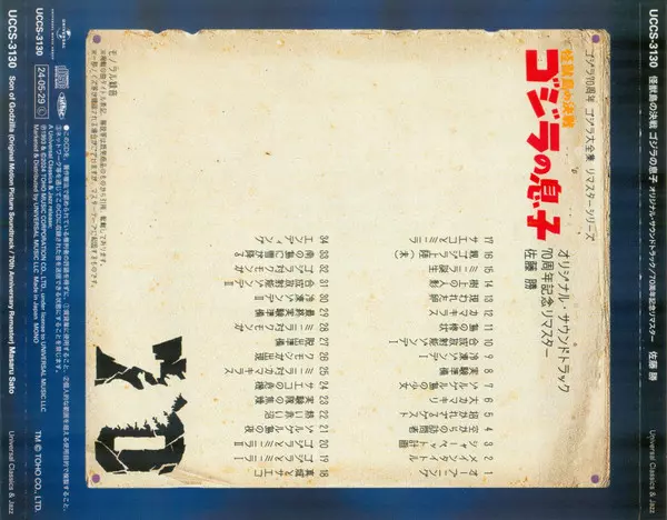 | Cím | 怪獣島の決戦 ゴジラの息子 (オリジナル・サウンドトラック) = Son Of Godzilla (Original Motion Picture Soundtrack) |