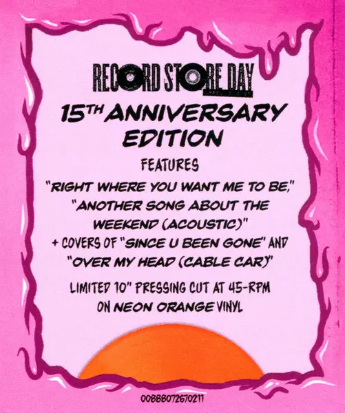| További információk | 15th Anniversary Neon Orange Vinyl — Limited 45RPM |