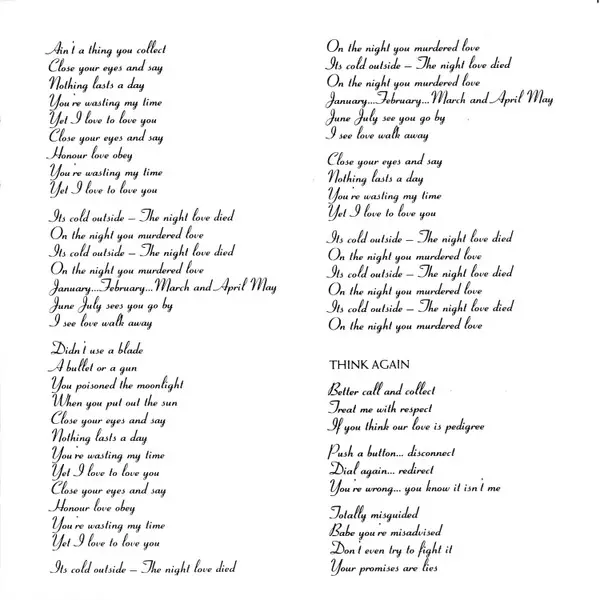 Arranged By [The Strings Are Arranged By] Richard Niles | Engineer [Engineered By] Martyn Webster | Mixed By Julian Mendelsohn | Producer [Produced By] Bernard Edwards, Mark White, Martin Fry
