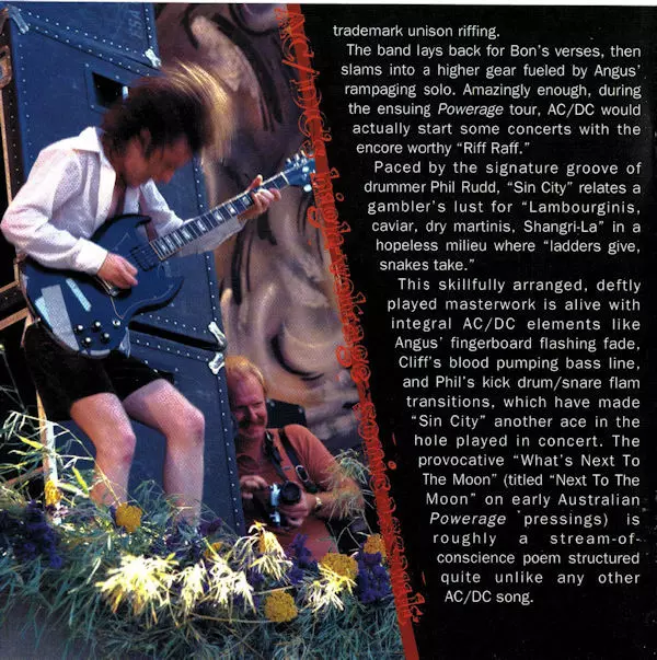 AC/DC představili svůj hit "Powerage" z roku 1978 s poctivými a pevnými riffy. Kvarteto, kterému stále vévodí křikloun Bon Scott, rozeznělo publikum rockovými klasikami jako "Riff Raff", "Rock'n'Roll Damnation" a "Down Payment Blues". Z reproduktorů to bouchá tak dobře, že si člověk říká, proč vlastně existují nějaké jiné rockové kapely :-)....