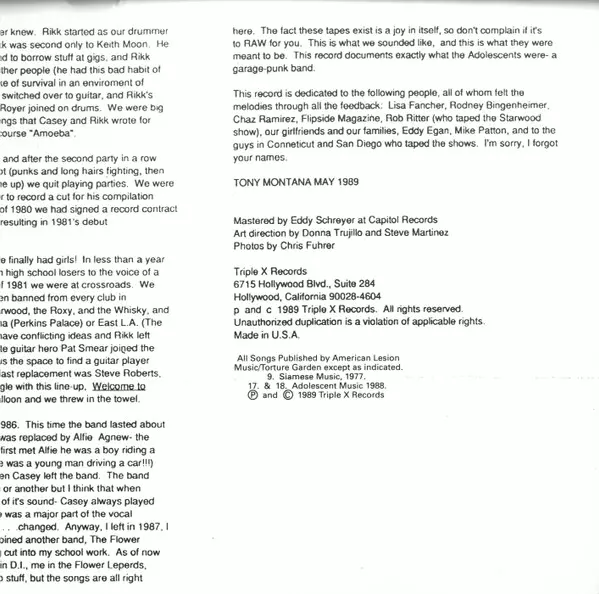 | Kiadó | Triple X Records |