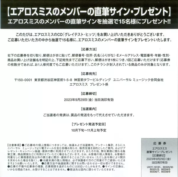 Aerosmith: Greatest Hits + Live Collection A lemezen lévő változat 2CD - standard kiadás. Ez a különleges kiadás - Japán a kiadó által Universal Music Enterprises év 25. augusztus 2023.