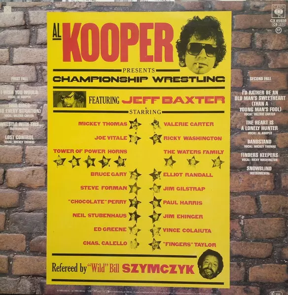 Al Kooper: Championship Wrestling A lemezen lévő változat bakelitlemez LP - standard kiadás. Ez a különleges kiadás - Európa a kiadó által CBS napján jelent meg 1982. Album műfajok között Rock, Funk / Soul, Southern Rock, Soul és Funk. Cx Encoded Vinyl.