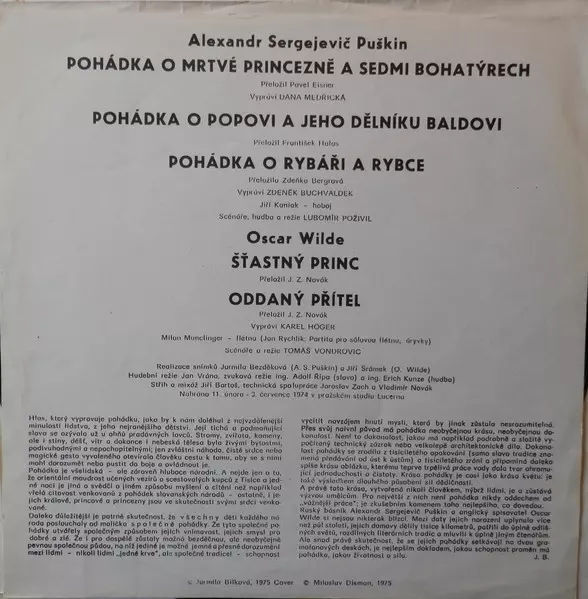 | Cím | Pohádka O Mrtvé Princezně A Sedmi Bohatýrech / Pohádka O Rybáři A Rybce / Pohádka O Popovi A Jeho Dělníku Baldovi / Štastný Princ / Oddaný Přítel |