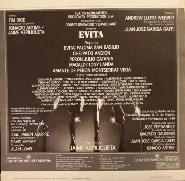 | Művész | Tim Rice | Andrew Lloyd Webber | Patxi Andión | Paloma San Basilio | Julio Catania | Tony Landa | Jaime Azpilicueta |