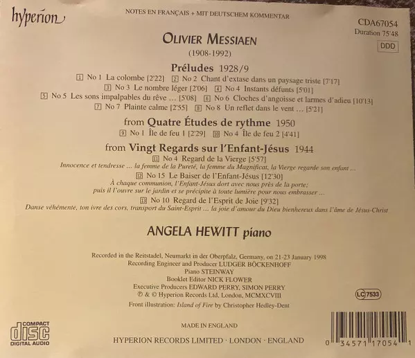 | Művész | Olivier Messiaen | Angela Hewitt |