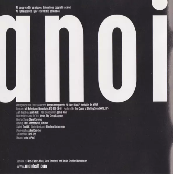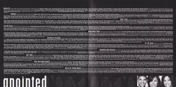 Anointed: Anointed A lemezen lévő változat CD - standard kiadás. Ez a különleges kiadás - USA a kiadó által Myrrh év 17. szeptember 2021. Album műfajok között Funk / Soul, Hip Hop, Gospel és RnB/Swing.