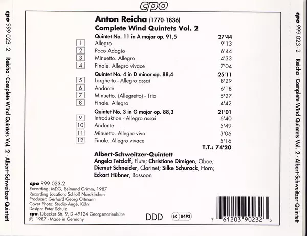 | Művész | Anton Reicha | Albert Schweitzer Quintett |