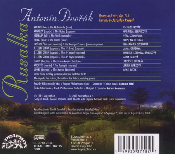 | Művész | The Czech Philharmonic Orchestra | Antonín Dvořák | Václav Neumann | Gabriela Beňačková |
