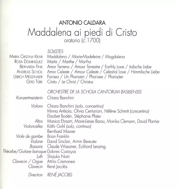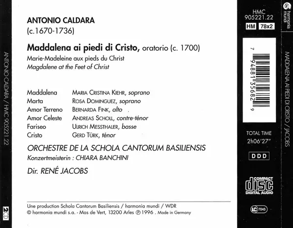 Bernarda Fink: Maddalena Ai Piedi Di Cristo A lemezen lévő változat 2CD - standard kiadás. Ez a különleges kiadás - Európa a kiadó által Harmonia Mundi France a következőkkel együttműködve Harmonia Mundi év 23. augusztus 1996. Album műfajok között Klasszikus zene, Barokk zene és Oratorio.