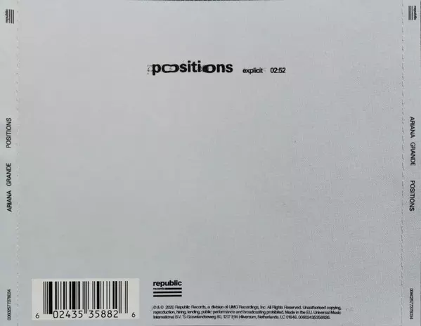 | További információk | Positions Single (CD) |