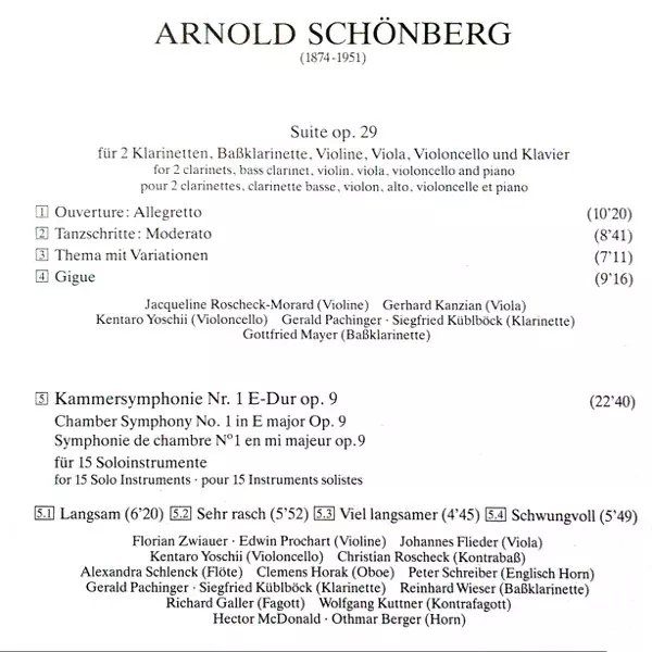| Cím | Arnold Schönberg - Kammersymphonie Op. 9 • Suite Op. 29 • Kaiserwalzer |