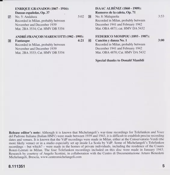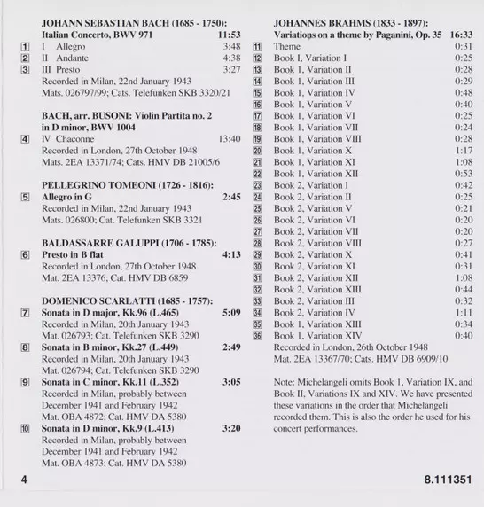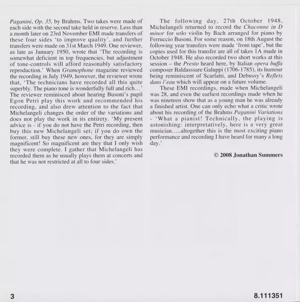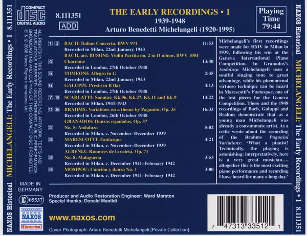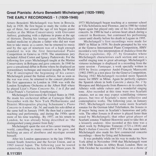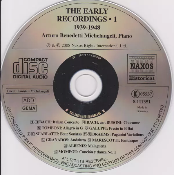 | Művész | Arturo Benedetti Michelangeli |