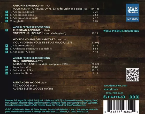 | Művész | Wolfgang Amadeus Mozart | Antonín Dvořák | Neil Thornock | Christian Asplund | Alexander Woods | Rex Woods | Aubrey Woods |