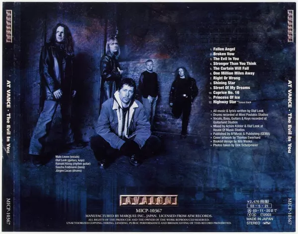 At Vance is a German neoclassical/power metal band formed in 1998 by guitarist Olaf Lenk. The band's musical style is characterized by a combination of heavy metal with classical music influences. Throughout their career, At Vance has undergone several lineup changes, with Lenk bei...