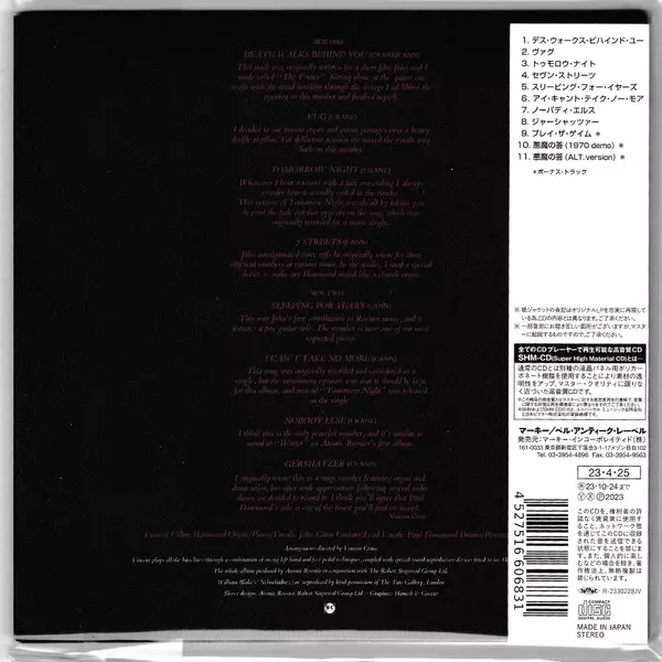| További információk | Japan SHM-CD Paper Sleeve — Bonus Tracks (Belle Antique) |