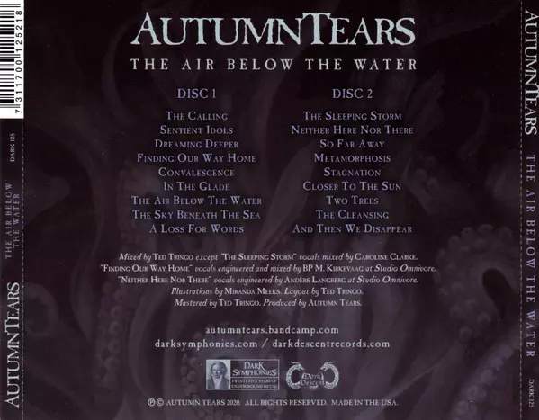 Autumn Tears: The Air Below The Water LTD A lemezen lévő változat 2CD - korlátozott példányszámban kiadás. Ez a különleges kiadás - USA a kiadó által Dark Symphonies év 28. február 2020. Album műfajok között Klasszikus zene és Neo-Classical.