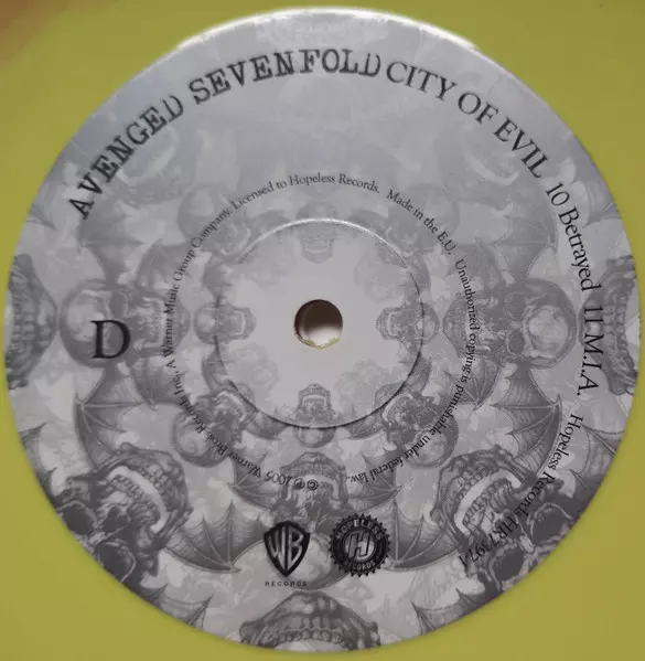 Avenged Sevenfold "City of Evil" is an album released in 2005. It contains some of the band's most popular songs, such as "Bat Country", "Beast and the Harlot" and "Seize the Day". The album was commercially successful and helped cement the band's position as one of the biggest metal bands in the world.