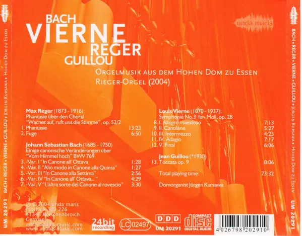 | Művész | Johann Sebastian Bach | Max Reger | Jean Guillou | Louis Vierne | Jürgen Kursawa |