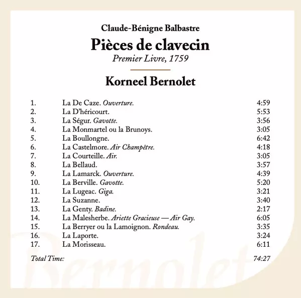 | Művész | Claude Balbastre | Korneel Bernolet |