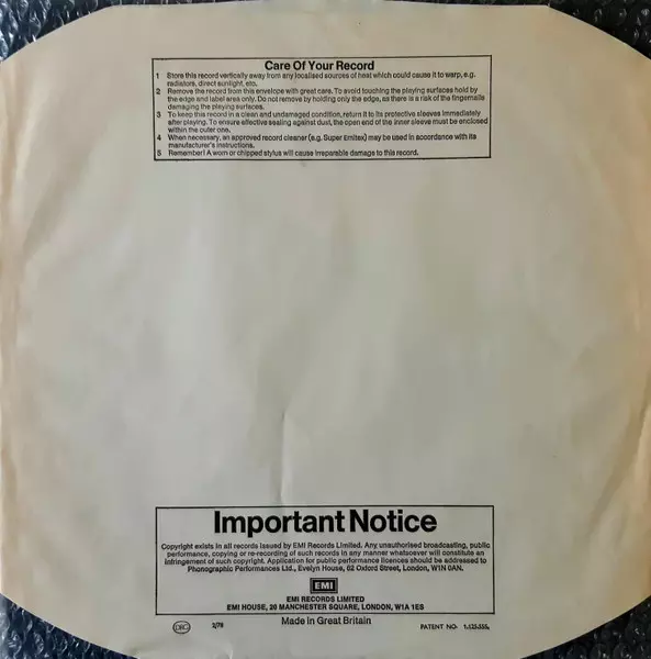 | További információk | 1977 UK Yellow-label original |