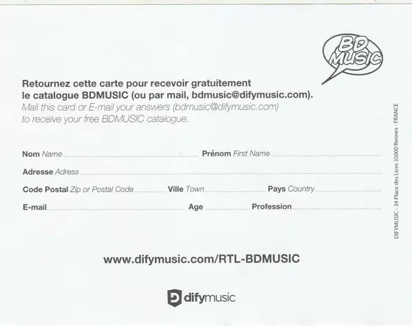| További információk | Special Edition CD + Bande Dessinée (BDMusic, France) |