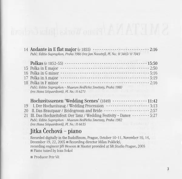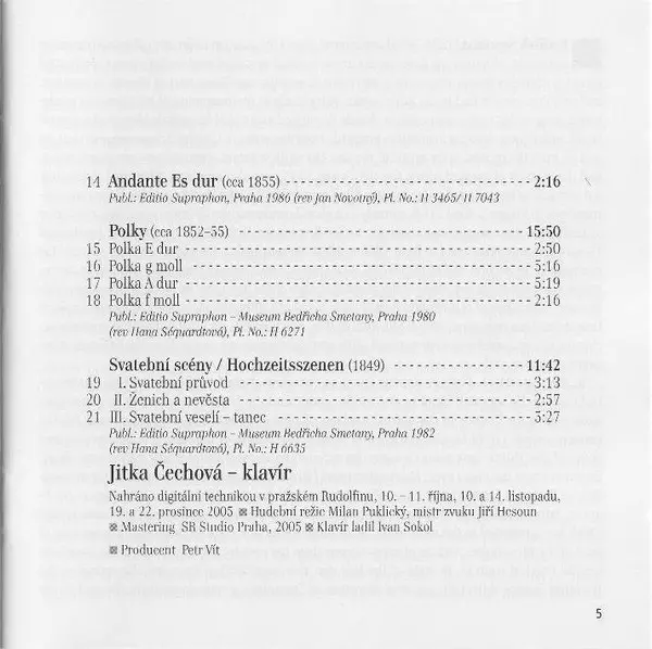 | Művész | Bedřich Smetana | Jitka Čechová |