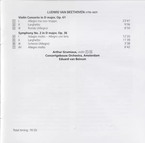 | Művész | Ludwig van Beethoven | Arthur Grumiaux | Eduard van Beinum |