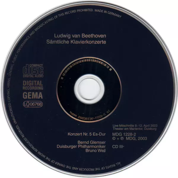 Művész | Ludwig van Beethoven | Bruno Weil | Bernd Glemser | Duisburger Philharmoniker |