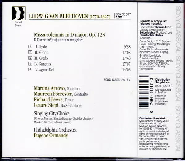| Missa Solemnis in D Major, Op. 123 (D-Dur / En Ré Majeur / In Re Maggiore) | 76:15 min |