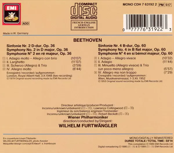 | Művész | Ludwig van Beethoven | Wiener Philharmoniker | Wilhelm Furtwängler |