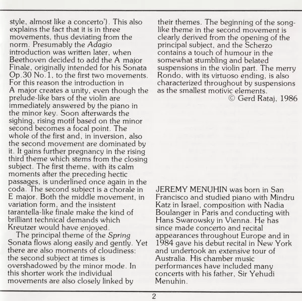 | Művész | Ludwig van Beethoven | Yehudi Menuhin | Jeremy Menuhin |