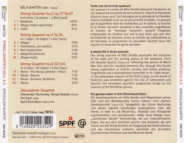 | Cím | String Quartets No 2, 4, 6 |