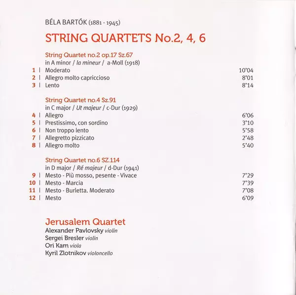 | Művész | Béla Bartók | Jerusalem String Quartet |