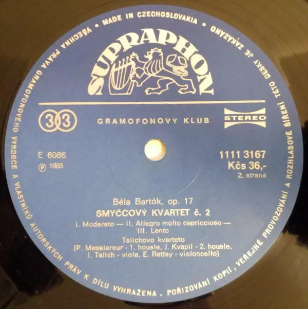 | Művész | Béla Bartók | Talich Quartet |