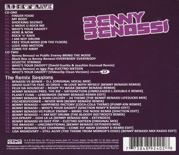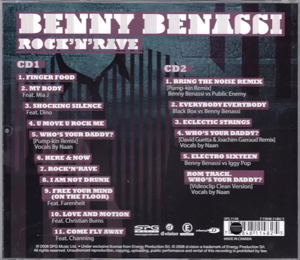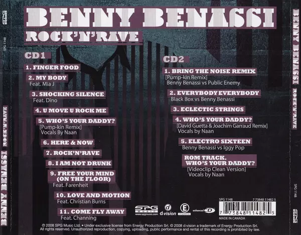 Benny Benassi: Rock'N'Rave / The Remix Sessions A lemezen lévő változat 3CD/Dobozkészlet - standard kiadás. Ez a különleges kiadás - Kanada a kiadó által SPG MUSIC év 12. október 2010. Album műfajok között Elektronikus zene, Electro, EBM, Electro House és Hard House.