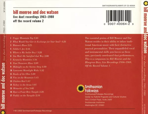 | Művész | Doc Watson | Bill Monroe |