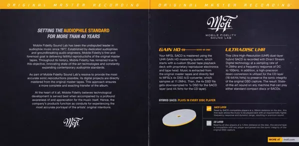 | További információk | Mobile Fidelity Numbered Hybrid SACD Digisleeve — Limited (2023) |