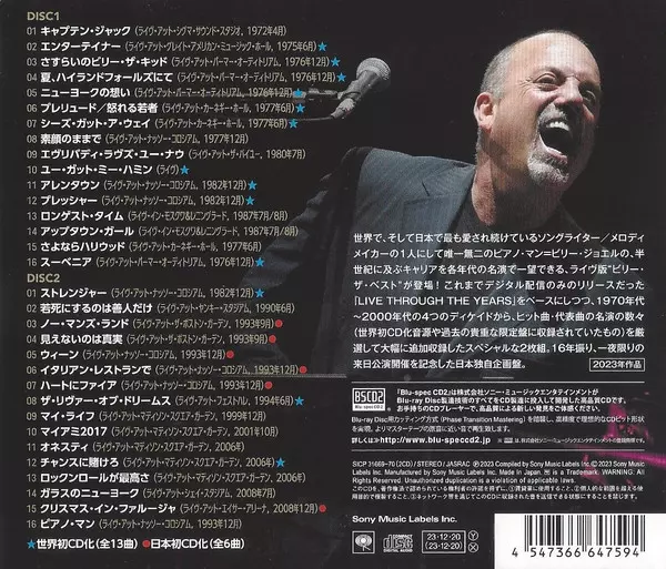 Billy Joel: Live Through The Years (Japan Edition) = ビリー・ザ・ベスト:ライヴ! A lemezen lévő változat 2CD - felújított kiadás. Ez a különleges kiadás - Japán a kiadó által Sony Records Int'l év 10. január 2025. Album műfajok között Rock, Pop és Blues. Blu Spec CD2.