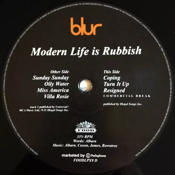 Blur: Modern Life Is Rubbish LTD A lemezen lévő változat bakelitlemez 2LP - felújított korlátozott példányszámban kiadás. Ez a különleges kiadás - Európa a kiadó által Food a következőkkel együttműködve Parlophone év 1. augusztus 2012.