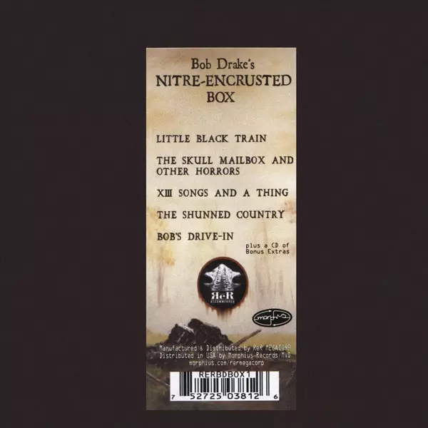 Bob Drake: Nitre-Encrusted Box: Antiquities LTD A lemezen lévő változat 6CD/Dobozkészlet - korlátozott példányszámban kiadás. Ez a különleges kiadás - Európa és az USA a kiadó által ReR Megacorp év 5. május 2017. Album műfajok között Rock, Folk, World, & Country, Progressive rock, Folk Rock, Experimental és Avant-garde.