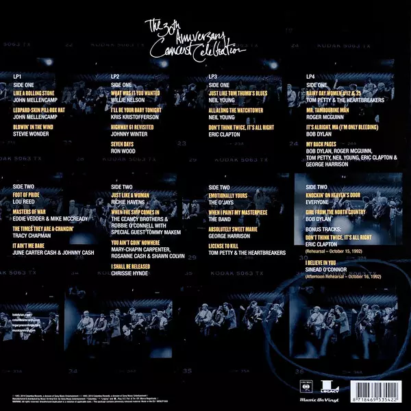 Deluxe 4LP Boxset. On October 16, 1992, the most sought-after item in all of New York City was a ticket to a live gathering of musical greats who came together to celebrate the 30th anniversary of BOB DYLAN's first album on Columbia Records. The four-hour show, in front of more than 18,000 spectators and broadcast to the world, brought together ...