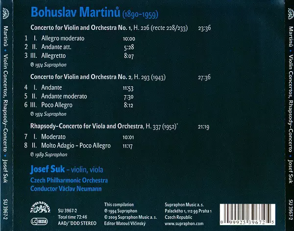 | Művész | The Czech Philharmonic Orchestra | Václav Neumann | Josef Suk | Bohuslav Martinů |