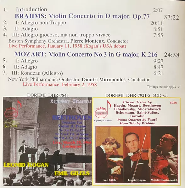 | Művész | Wolfgang Amadeus Mozart | Johannes Brahms | Leonid Kogan |