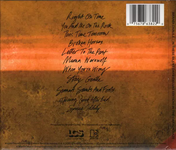 Brandi Carlile: In These Silent Days (Deluxe Edition) In The Canyon Haze DLX A lemezen lévő változat 2CD - deluxe kiadás. Ez a különleges kiadás - USA a kiadó által Low Country Sound a következőkkel együttműködve Elektra év 7. október 2022.