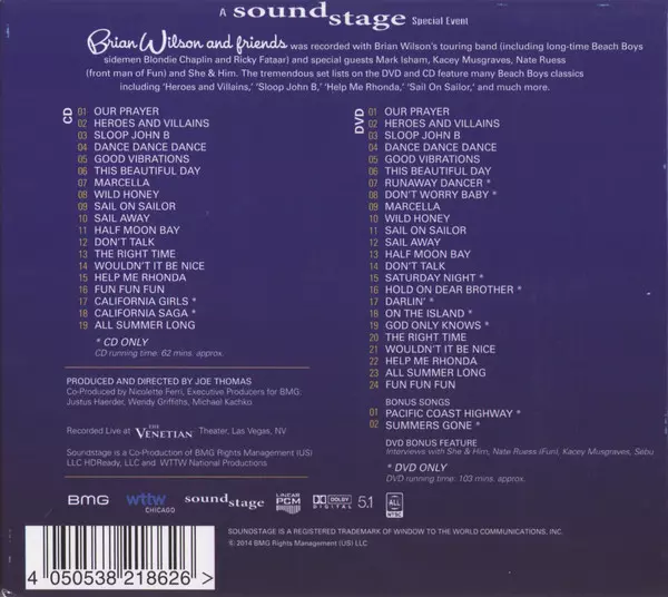 Brian Wilson: Brian Wilson and Friends: A Soundstage Special Event A lemezen lévő változat CD/DVD - standard kiadás. Ez a különleges kiadás - USA a kiadó által BMG Rights Management év 29. július 2016. Album műfajok között Rock és Pop.