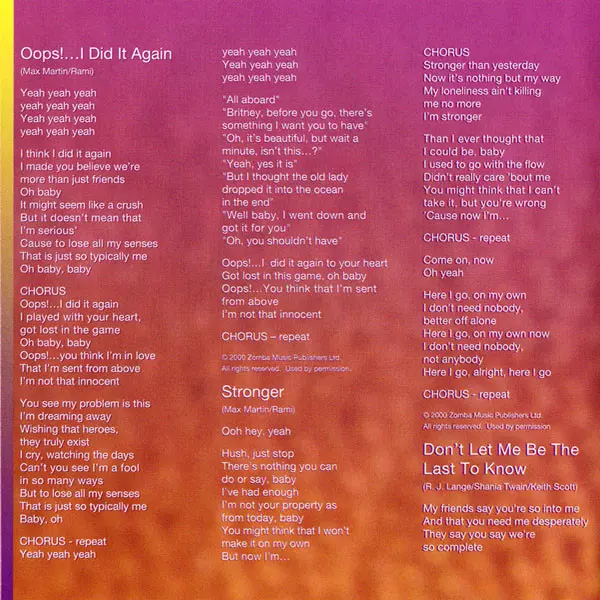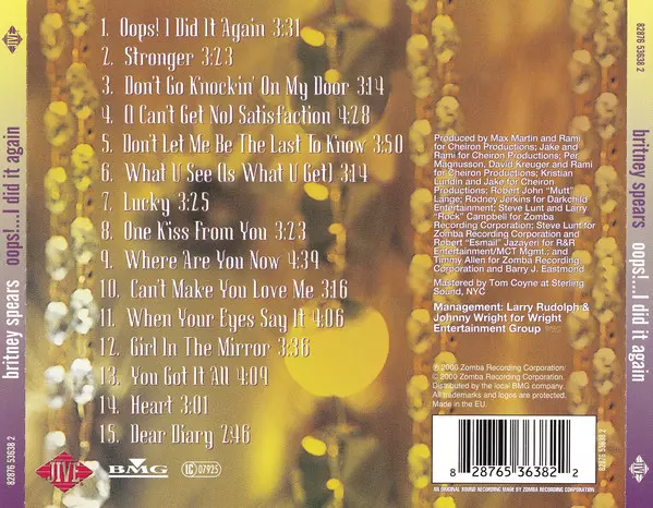 Britney Spears: Oops!...I Did It Again A lemezen lévő változat CD - standard kiadás. Ez a különleges kiadás - Európa a kiadó által Jive a következőkkel együttműködve BMG év 1. szeptember 2006.