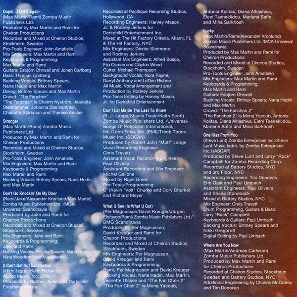Backing Vocals Britney Spears, Max Martin, Nana Hedin, Nina Woodford | Engineer [Mix Engineer] Jay-Kee, Rami | Keyboards, Programmed By Jay-Kee, Rami | Producer Max Martin, Rami | Written-By Alexander Kronlund, Jay-Kee, Max Martin, Rami