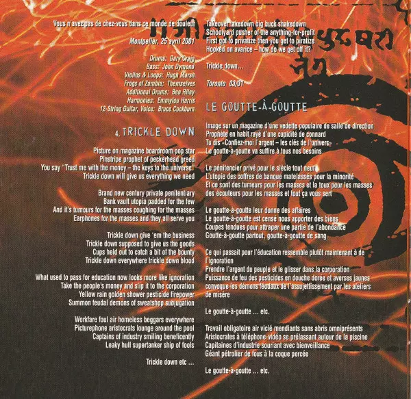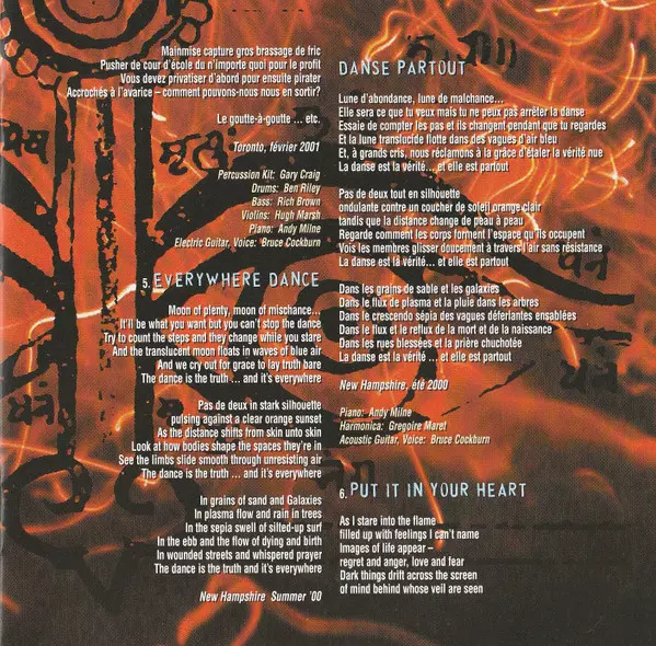 Bass Rich Brown | Drums Ben Riley (3) | Percussion Gary Craig | Piano Andy Milne | Violin Hugh Marsh | Vocals, Electric Guitar Bruce Cockburn | Written-By Andy Milne, Bruce Cockburn, Carl Walker