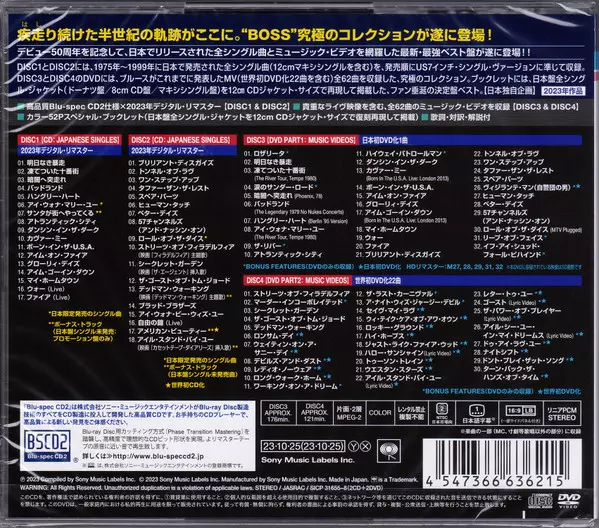 Bruce Springsteen: Japanese Singles Collection -Greatest Hits- A lemezen lévő változat 2CD/2DVD - felújított kiadás. Ez a különleges kiadás - Japán a kiadó által Sony Records Int'l év 10. január 2025. Album műfajok között Rock, Pop, Folk, World, & Country, Classic Rock és Arena Rock.